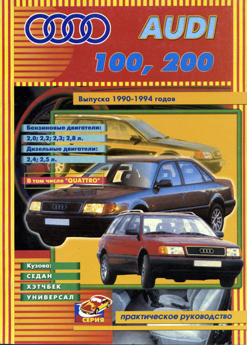 Справочное руководство по ремонту и техобслуживанию автомобилей Audi 200 / Audi 100 1990-1994 гг. выпуска, оборудованных бензиновыми двигателями рабочим объемом 2,0, 2,2, 2,3, 2,8 литра и дизельными двигателями рабочим объемом 2,4, 2,5 литра.