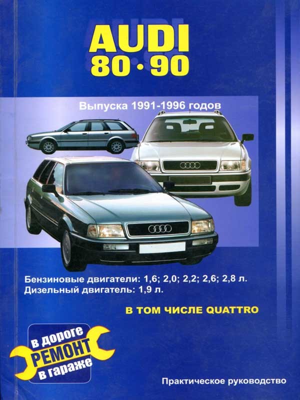 Руководство по ремонту и техническому обслуживанию автомобилей Audi 80 / 90. Все модели автомобилей после 1991 года выпуска. 80, 80 Quattro, 90, 90 Quattro, 90 S, 90 CS, 90 CS Quattro, Coupe Quattro с бензиновыми двигателями рабочим объемом 1,6, 2,0, 2,2, 2,3, 2,6, 2,8 л. и дизельными двигателями рабочим объемом 1,9 л.
