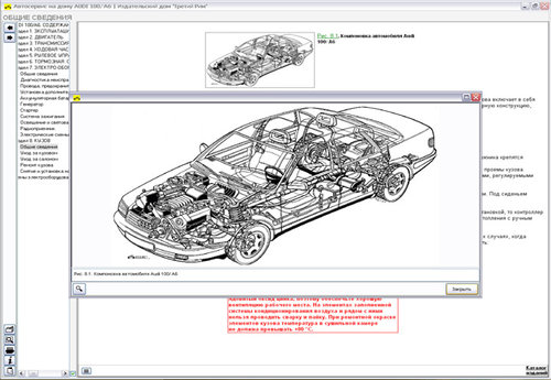 Электронное руководство по ремонту, техническому обслуживанию и эксплуатации автомобилей Audi 100 / A6 (выпуск с 1990 по 1997 год) и его модификаций с четырехцилиндровыми, пятицилиндровыми и шестицилиндровым бензиновыми двигателями рабочим объемом 1.8, 2.0, 2.2, 2.3, 2.6, 2.8 л. и дизельными двигателями рабочим объемом 1.9, 2.4 и 2.5 л.