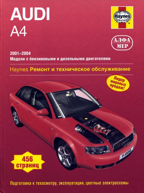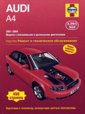 Руководство по эксплуатации Ауди А4, руководство по ремонту и техническому обслуживанию и эксплуатации автомобилей Audi А4 2001-2004 гг. выпуска, оборудованных бензиновыми четырехцилиндровыми двигателями рабочим объемом 1,8 (1781 см3) с турбонаддувом и 2,0 л. (1984 см3), включая варианты FSI, а также турбодизельными четырехцилиндровыми двигателями рабочим объемом 1,9 л. (1896 см3). Подготовка к техосмотру. Ремонт узлов и агрегатов Ауди А4. Техническое обслуживание.