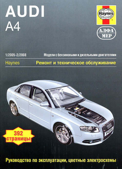 Справочно-информационное, с подробными иллюстрациями издание инструкция по ремонту Audi A4, а также руководство по эксплуатации и техобслуживанию, устройство Ауди А4 В7 в кузовах седан и универсал (Avant). Эта модель Ауди выпускалась с 2005 по 2008 годы. Рассмотрены автомобили с 4-х цилиндровыми бензиновыми двигателями, включая турбированные, рабочим объемом 1,8 (1781 см3) и 2,0 л. (1984 см3), а также турбированными 4-х цилиндровыми дизелями рабочим объемом 1,9 (1896 см3) и 2,0 л. (1968 см3). Ремонт узлов и агрегатов Audi A4. Устройство, обслуживание, электрические схемы.