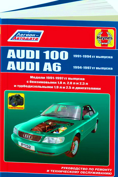 Руководство по ремонту Ауди А6, книга, инструкция по эксплуатации, пособие по обслуживанию Audi 100 1991-1997 г. выпуска, оборудованных бензиновыми двигателями рабочим объемом 1,8, 2,0, 2,3 литра, а также дизельными двигателями рабочим объемом 1,9 и 2,5 литра.