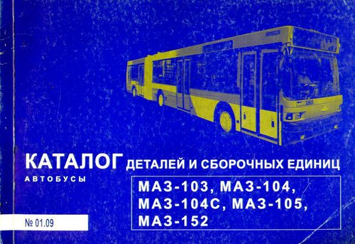 Каталог деталей, запчастей и сборочных единиц городских МАЗ-103, МАЗ-104, МАЗ-105, пригородных МАЗ-104С и междугородних автобусов МАЗ-152.