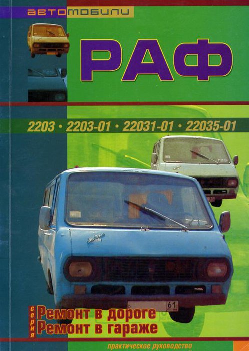 Руководство по ремонту и техническому обслуживанию микроавтобусов РАФ-2203, РАФ-2203-01, РАФ-22031-01, РАФ-22035-01. Пособие также содержит каталог деталей РАФ, каталог запасных частей и сборочных единиц микроавтобусов РАФ.