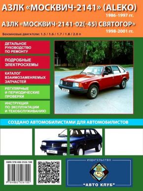 Универсальное практическое пособие по ремонту Москвич 2141 / Москвич Святогор, включающее инструкцию по эксплуатации, техническое обслуживание и каталог деталей автомобилей Москвич 2141, выпущенных в период с 1986 по 1997 год и оборудованных бензиновыми двигателями рабочим объемом 1,5, 1,6, 1,7, 1,8, 2,0 л.