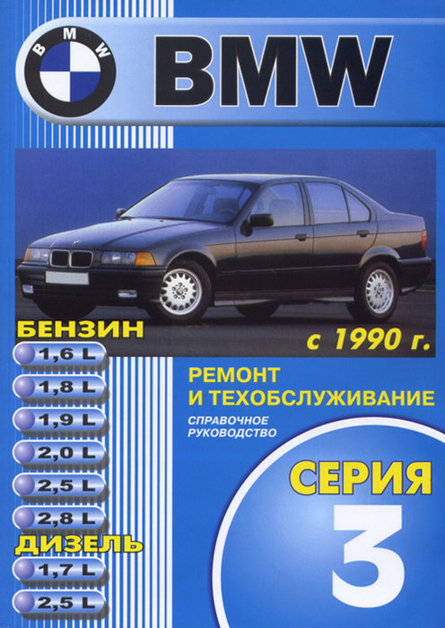 Руководство по обслуживанию БМВ 3, руководство по ремонту, техническому обслуживанию и эксплуатации автомобилей BMW 3 серии с 1990 г. выпуска, оборудованных как бензиновыми, так и дизельными двигателями следующих моделей