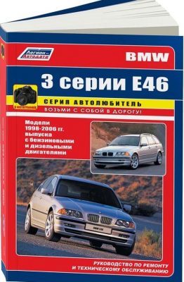 Справочное издание руководство по ремонту BMW Е46, а также инструкция по ремонту и техническому обслуживанию, устройство автомобилей BMW 3 серии модели Е46 с кузовами седан (1998-2004 гг.), купе (1999-2006 гг.), кабриолет (Cabrio 2000-2006 гг.) и универсал (Touring 1999-2005 гг.), оборудованных бензиновыми рядными 4-цилиндровыми М43, N40, N42, N46 и 6-цилиндровыми М52, S52 двигателями и дизельными двигателями М47 и М57. Ремонт узлов и агрегатов БМВ в 46 кузове. Эксплуатация, ТО, электрические схемы.