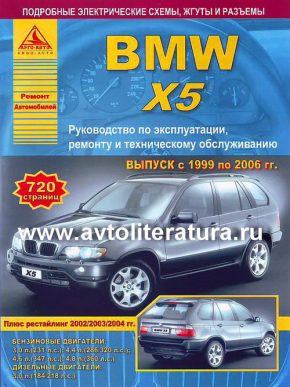Высококлассная профессиональная иллюстрированная книга по ремонту БМВ Х5, а также инструкция по эксплуатации и техническому обслуживанию, устройство автомобилей BMW X5, оборудованных бензиновыми двигателями рабочим объемом 3,0 (231 лс), 4,4 (286/320 л.с.), 4,6 (347 л.с.), 4,8 л (360 л.с.) и дизелями объемом 3,0 (184/218 л.с.). Пособие рассказывает об автомобилях BMW X5, поступивших в продажу в период с 1999 по 2006 год, включая полные данные о рестайлинговых моделях 2002, 2003 и 2004 годов.