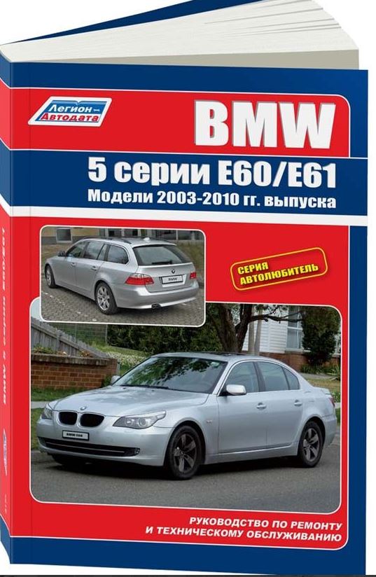 Книга справочно-информационная руководство по ремонту BMW E60, а также руководство по эксплуатации и техническому обслуживанию автомобилей БМВ 5-й серии с кузовом Е60 / Е61, выпускаемых с июля 2003 г., оборудованных рядным 6-цилиндровым бензиновым двигателем модели М54, рабочим объемом 2,0 л. (520i), 2,5 л. (525i), 3,0 л. (530i), V-образным 8-цилиндровым бензиновым двигателем модели N62, рабочим объемом 3,5 л. (535i), 4,0 л. (540i), 4,5 л. (545i), 4,8 л. (550i), рядным 6-цилиндровым дизельным двигателем модели М57 рабочим объемом 2,0 л. (520d), 2,5 л. (525d), 3,0 л. (530d), 3,5 л. (535d) с системой впрыска топлива типа Common Rail. Ремонт БМВ в 60 кузове. Устройство, эксплуатация, электросхемы.