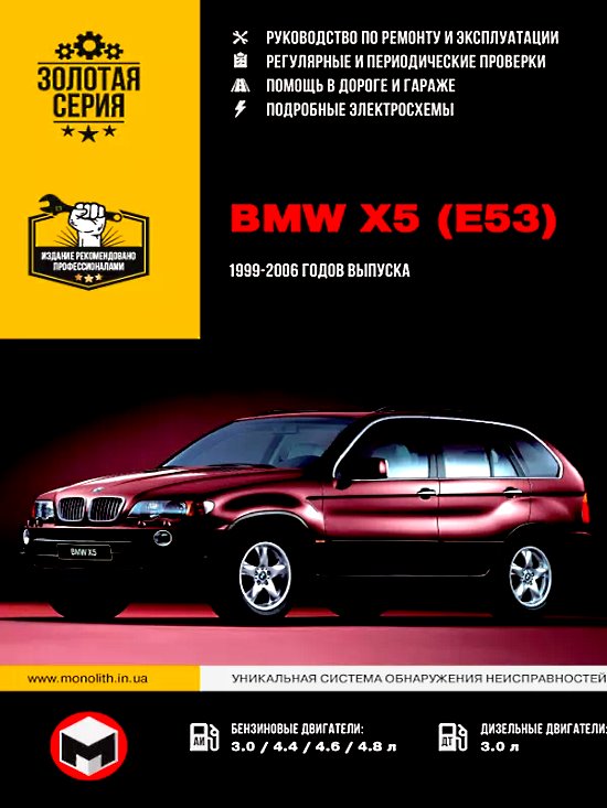 Руководство (мануал) по ремонту и эксплуатации BMW Х5. В электронной книге рассмотрены автомобили первого поколения (индекс кузова e53) 1999 – 2006 года выпуска с бензиновыми и дизельными двигателями.
