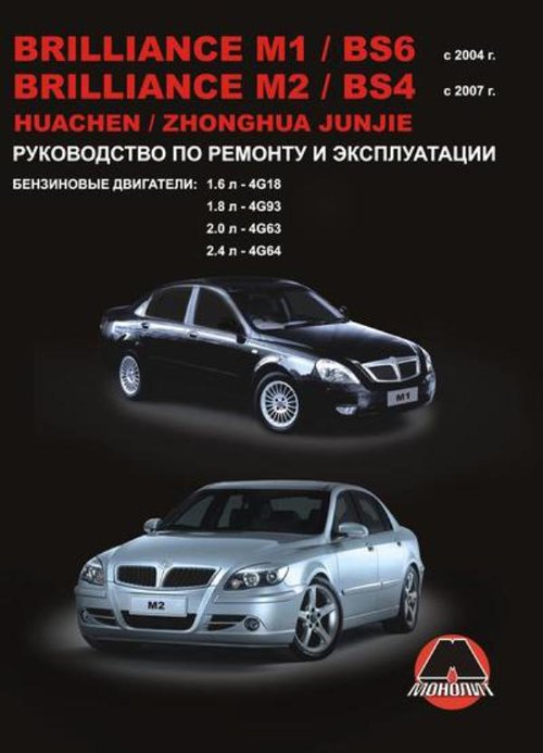 Руководство по ремонту, эксплуатации и техническому обслуживанию автомобилей Brilliance M1 / BS6 с 2004 г. выпуска, Brilliance M2 / BS4 / Huachen Junjie / Zhonghua Junjie с 2007 г. выпуска, оборудованных бензиновыми двигателями 4G18 рабочим объемом 1,6 л, 4G93 рабочим объемом 1,8 л, 4G63 рабочим объемом 2,0 л, 4G64 рабочим объемом 2,4 л. Ремонт Бриллианс М1. Инструкция по эксплуатации. Электросхемы.