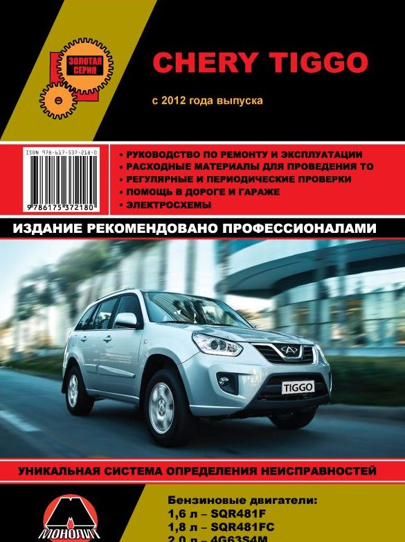 Справочно-информационная книга по ремонту Chery Tiggo, а также инструкция по техническому обслуживанию и эксплуатации автомобилей Чери Тигго с 2012 года выпуска, оборудованных бензиновыми двигателями рабочим объемом 1,6 л. (SQR481F), 1,8 л. (SQR481FC), 2,0 л. (4G63S4M). Мощность 125 / 126 / 132 л. с. Ремонт узлов и агрегатов Чери Тигго. Эксплуатация, техобслуживание, электрические схемы.