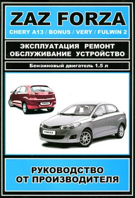 Справочно-информационное иллюстрированное издание Руководство по ремонту Chery Bonus / Chery A13 / Chery Very / Chery Fulwin 2, ZAZ Forza, устройство Chery Bonus / Chery A13 / Chery Very / Chery Fulwin 2, ZAZ Forza, руководство по эксплуатации и техническому обслуживанию Chery Bonus / Chery A13 / Chery Very / Chery Fulwin 2, ZAZ Forza, которые оборудуются бензиновыми двигателями литражом 1,5. Ремонт Чери Бонус. Устройство, эксплуатация.