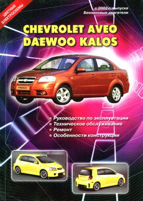 Руководство по ремонту, техническому обслуживанию и эксплуатации, устройство автомобилей Chevrolet Aveo / Daewoo Kalos с 2002 г. выпуска, оборудованных бензиновыми двигателями рабочим объемом 1,2 л. SOHC – 53 кВт (72 л.с.), 1,4 л. SOHC 8V – 61 кВт (83 л.с.), 1,4 л. DOHC 16V – 69 кВт (94 л.с.), 1,5 л. SOHC – 62 кВт (84 л.с.).