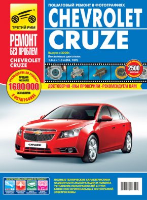 Подробное информационно-справочное со множеством цветных иллюстраций издание Руководство по ремонту Chevrolet Cruze, а также руководство по эксплуатации и техническому обслуживанию, устройство Chevrolet Cruze с 2009 г. выпуска, оборудованных бензиновыми двигателями рабочим объемом 1,6 и 1,8 л. (R4, 16V). Ремонт Шевроле Круз. Эксплуатация. ТО. Электросхемы. Цветные фотографии.