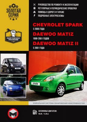 Справочное пособие Руководство по ремонту Шевроле Спарк / Daewoo Matiz / Daewoo Matiz II, эксплуатации и техническому обслуживанию, устройство автомобилей Chevrolet Spark / Daewoo Matiz / Daewoo Matiz II и их модификаций, с 1998 г. выпуска, оборудованных бензиновыми двигателями рабочим объемом 0,8, 1,0 л.