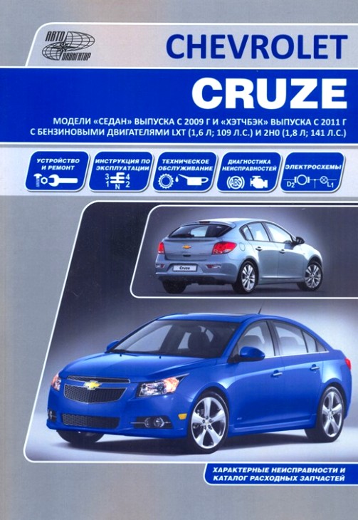 Издание Книга по ремонту Шевроле Круз, устройство автомобиля, а также инструкция по техническому обслуживанию и эксплуатации Chevrolet Cruze, моделей седан с 2009 года выпуска и моделей хэтчбэк с 2011 года выпуска. Автомобили оборудованы бензиновыми двигателями LXT рабочим объемом 1,6 л (109 л.с.) и 2Н0 – 1,8 л. (141 л.с). Каталог расходных запасных частей. Ремонт и эксплуатация. Устройство, диагнотика, неисправности. Схемы электрических соединений.