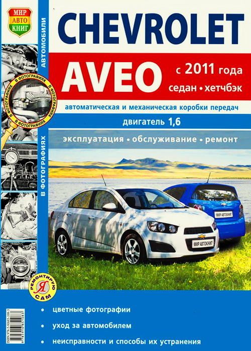 Книга по ремонту Шевроле Авео с 2011 г. выпуска, инструкция по эксплуатации и техобслуживанию Chevrolet Aveo, оборудованных бензиновым двигателем рабочим объемом 1,6 литра.