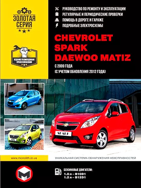 Руководство (мануал) по ремонту и эксплуатации Шевроле Спарк и Дэу Матиз. В электронной книге рассмотрены автомобили третьего поколения под индексом M300: 2009 – 2022 года выпуска с бензиновыми двигателями.