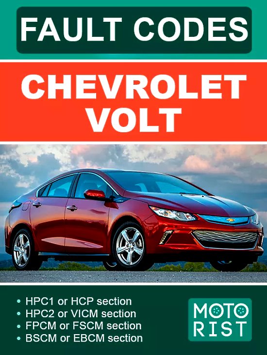 В PDF руководстве приведены коды ошибок и их расшифровка автомобиля Шевроле Вольт второго поколения: 2015 – 2019 года выпуска.