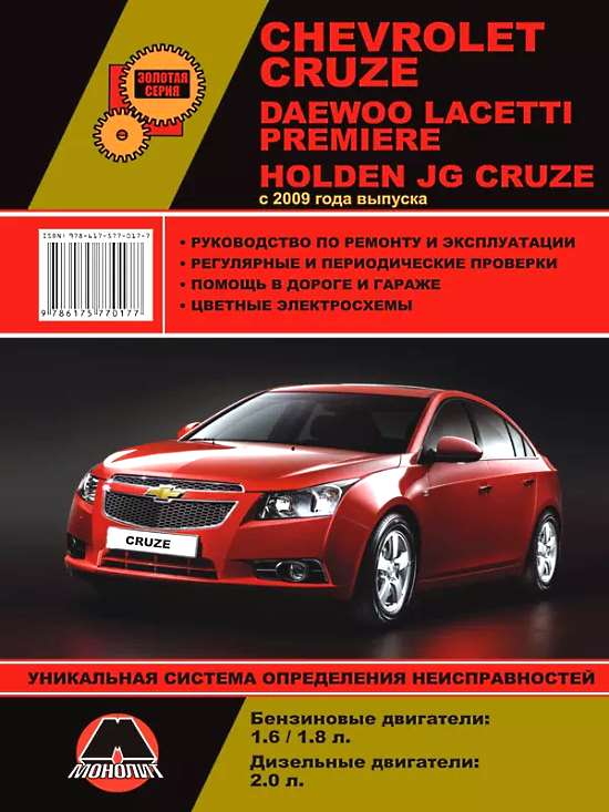 Руководство (мануал) по ремонту и эксплуатации Шевроле Круз и Дэу Лачетти. В электронной книге рассмотрены автомобили первого поколения (индекс платформы J300) с 2009 по 2015 года выпуска с бензиновыми и дизельными двигателями.