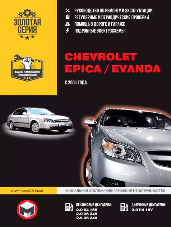 Руководство (мануал) по ремонту и эксплуатации Шевроле Эпика / Эванда. В электронной книге рассмотрены автомобили первого поколения (индекс платформы V200/V250) с 2001 по 2012 года выпуска с бензиновыми и дизельными двигателями.