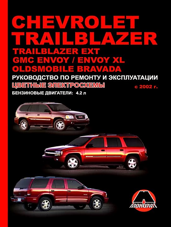 Руководство (мануал) по ремонту и эксплуатации Шевроле Трейлблейзер. В электронной книге рассмотрены автомобили первого поколения (индекс GM360): 2002 – 2010 года выпуска с бензиновыми двигателями, а также Trailblazer EXT / GMC Envoy / GMC Envoy XL.