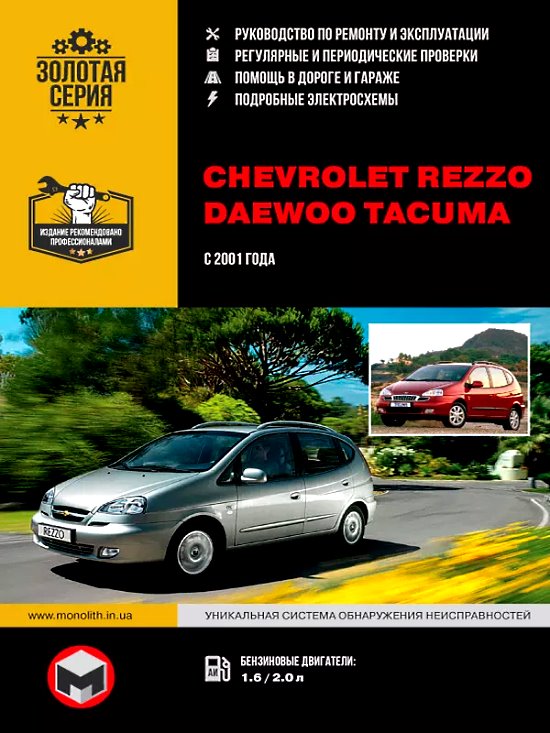 Руководство (мануал) по ремонту и эксплуатации Шевроле Реззо и Дэу Такума. В электронной книге рассмотрены автомобили первого поколения с 2001 по 2008 года выпуска с бензиновыми двигателями.