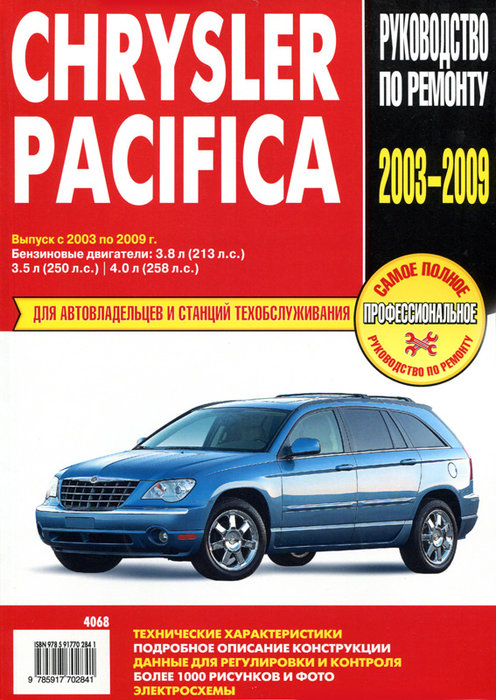 Справочное иллюстрированное издание Руководство по ремонту Chrysler Pacifica, устройство, руководство по эксплуатации и техническому обслуживанию Chrysler Pacifica с передним или полным приводом 4WD, которые выпускались в США с 2003 по 2009 года. Оснащались модели бензиновыми двигателями рабочим объемом 3,5, 3,8, 4,0 л. Комплектовалась эта модель 4-х ступенчатой АКП.