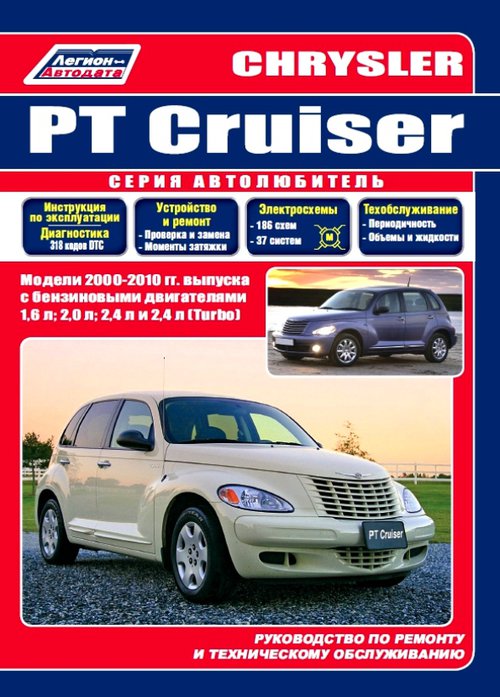 Справочное пособие Руководство по ремонту Крайслер ПТ Крузер, а также руководство по эксплуатации и техническому обслуживанию, устройство автомобилей Chrysler PT Cruiser с 2000 г. выпуска, оборудованных бензиновыми двигателями рабочим объемом 1,6, 2,0, 2,4 и 2,4 л. Turbo. Ремонт узлов и агрегатов Крайслер Круизер. Устройство. Эксплуатация. ТО. Диагностика. Схемы электрооборудования.