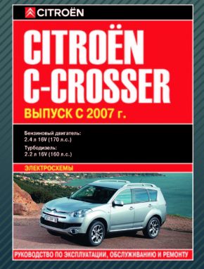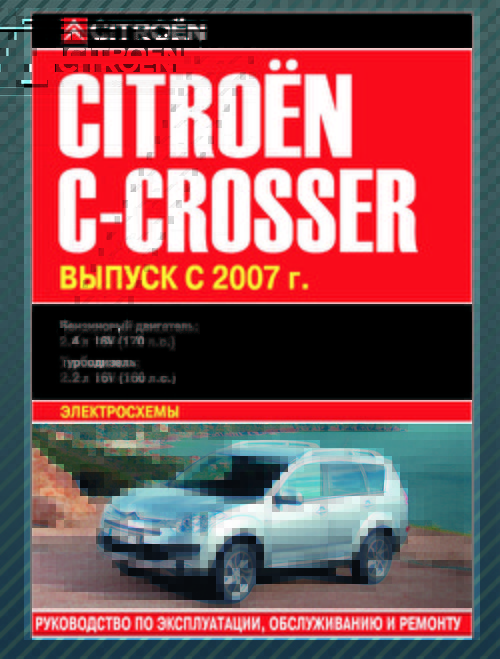 Справочное информационное, со множеством иллюстраций издание Руководство по ремонту Citroen C-Crosser, а также руководство по эксплуатации и текущему техобслуживанию, устройство Citroen C-Crosser с 2007 г. выпуска. Машина оснащается бензиновыми двигателями литражом 2,4 (16 V, 170 л.с.) и турбодизелями литражом 2,2 (16 V, 160 л.с.).
