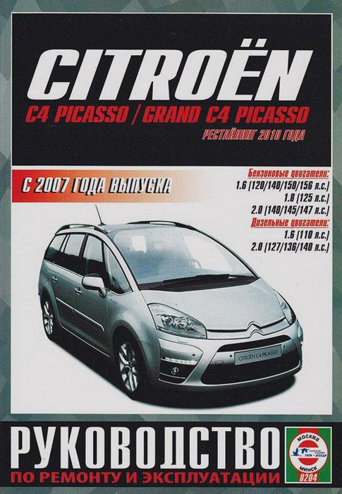 Иллюстрированное практическое руководство по ремонту Ситроен Ц4, включая модификации Citroen C4 Picasso, Citroen C4 Grand Picasso, инструкция по эксплуатации и техническому обслуживанию, устройство Ситроен С4, Ситроен С4 Пикассо, Ситроен С4 Гранд Пикассо, выпускаемых с 2007 года, включая рестайлинговые модели с 2010 года. Автомобили оборудуются бензиновыми двигателями рабочим объемом 1,6, 1,8, 2,0 л и дизельными двигателями объемом 1,6, 2,0 л.