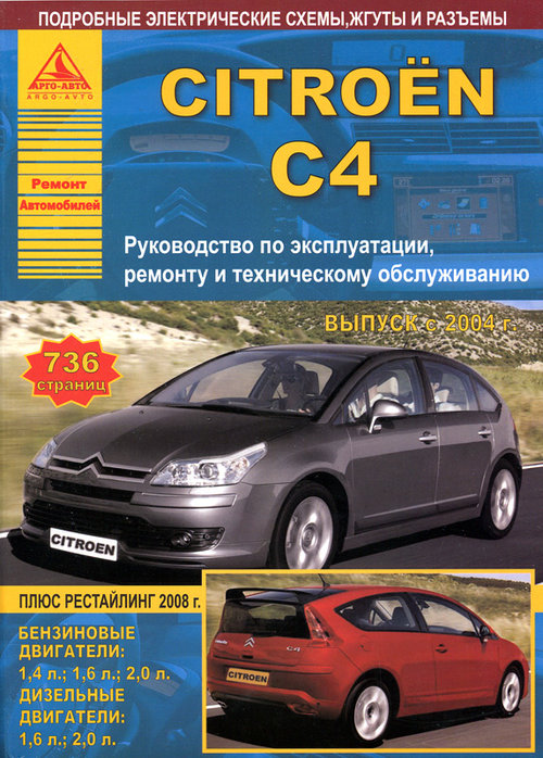Справочное издание руководство по ремонту Ситроен С4, руководство по эксплуатации и техобслуживанию Ситроен С4, устройство Ситроен С4 с 2004 г. выпуска, оснащенных бензиновыми двигателями рабочим объемом 1,4, 1,6, 2,0 л., а также дизельными моторами рабочим объемом 1,6 и 2,0 л. Ремонт Ситроен С4. Инструкция по эксплуатации и ТО. Электросхемы, жгуты, разъемы.
