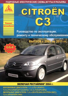 Подробнейшее справочное иллюстрированное издание Руководство по ремонту Ситроен С3, устройство Ситроен С3, руководство по эксплуатации и техническому обслуживанию Ситроен С3, которые выпускались с 2001 по 2011 годы (включая рестайлинг 2004) и оборудовались бензиновыми двигателями рабочим объемом 1,1 (TU1JP, HFX), 1,4 (TU3JP, KFV, ET3J4, KFU), 1,6 л. (TU5JP4, NFU), а также дизелями литражом 1,4 (DV4TD, 8HX, DV4TED4, 8HY) и 1,6 л. (DV6ATED4, 9HX). Ремонт Ситроен С3. Эксплуатация, техобслуживание, электрические схемы.