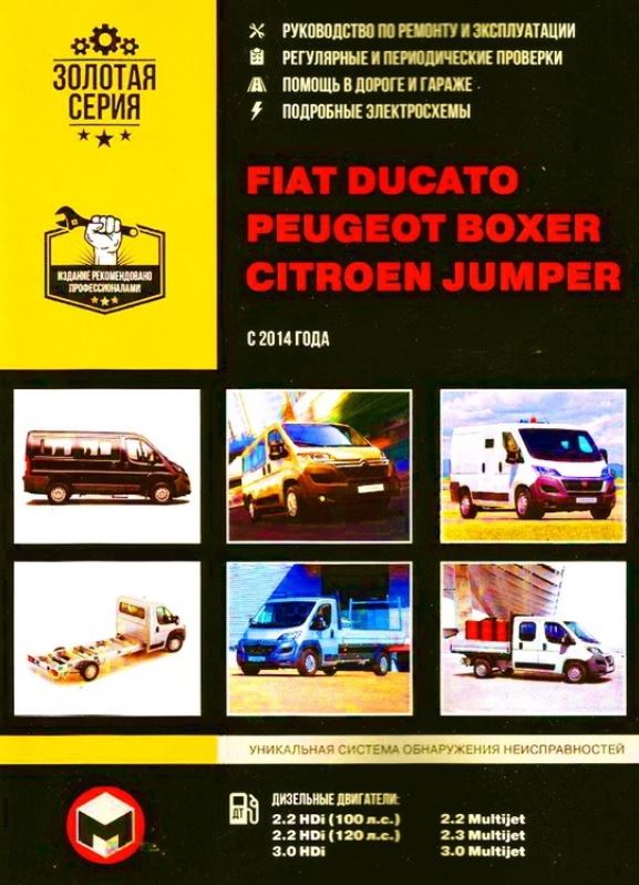 Руководство по ремонту Citroen Jumper с 2014 г. выпуска, оборудованных дизельными двигателями рабочим объемом 2,2, 2,3, 3,0 литра, мощностью 100, 120, 165 л.с. инструкция по ремонту и эксплуатации Ситроен Джампер.