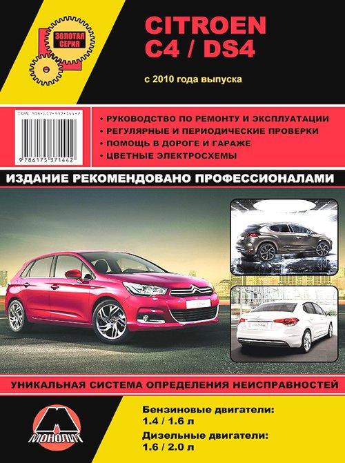 Профессиональное практическое руководство по ремонту Citroen DS4, устройство, инструкция по эксплуатации, техническое обслуживание Ситроен ДC4, выпускающихся с 2010 года и оборудованных бензиновыми двигателями рабочим объемом 1,4, 1,6 л и дизельными двигателями объемом 1,6 и 2,0 л.