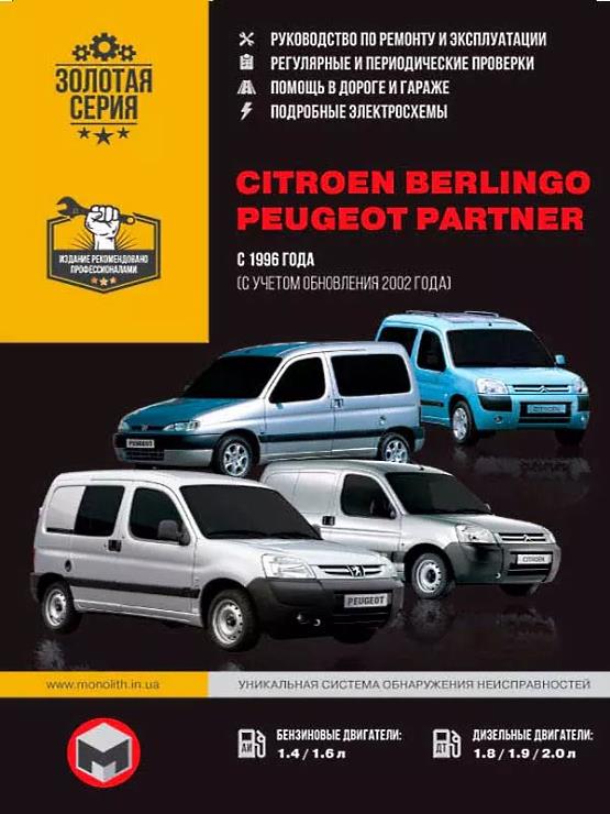 Руководство (мануал) по ремонту и эксплуатации Ситроен Берлинго и Пежо Партнер. В электронной книге рассмотрены автомобили первого поколения с 1996 по 2012 года выпуска.