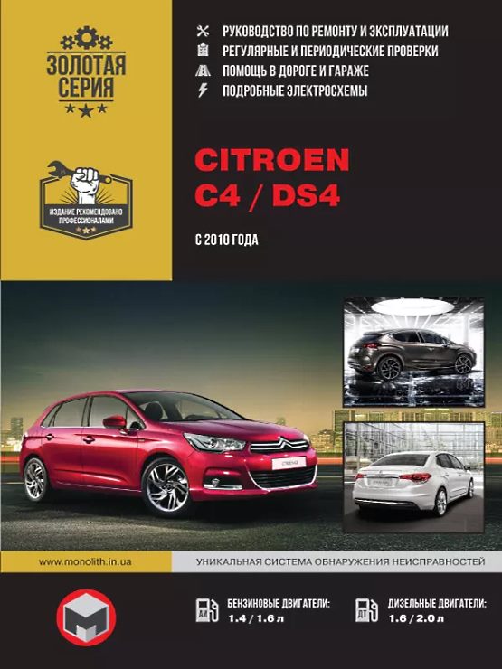 Руководство (мануал) по ремонту и эксплуатации Ситроен С4 / ДС4. В электронной книге рассмотрены автомобили второго поколения с 2010 по 2023 года выпуска с бензиновыми и дизельными двигателями.