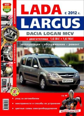 Цветная, богато иллюстрированная информационно-справочная книга по ремонту Dacia Logan MCV (а также ВАЗ Лада Ларгус), устройство Dacia Logan MCV, подробное руководство по техническому обслуживанию Dacia Logan MCV и пособие по эксплуатации Дача Логан MCV. Данная модель оборудуется бензиновым моторами 8V и 16V рабочим объемом 1,6 л.