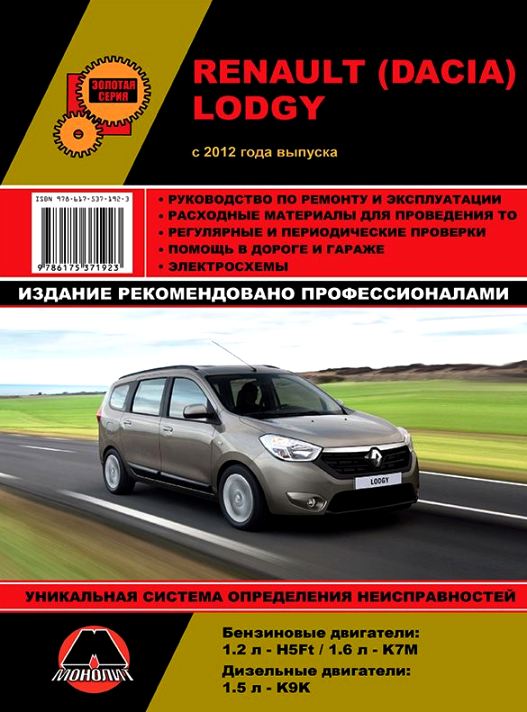 Профессиональное иллюстрированное руководство по ремонту Dacia Lodgy / Renault Lodgy, а также пособие по техническому обслуживанию и эксплуатации автомобилей Дача Лоджи / Рено Лоджи с 2012 года выпуска. Модели оборудованы бензиновыми двигателями рабочим объемом 1,2 л.(H5Ft), 1,6 л. (K7M), дизельными двигателями рабочим объемом 1,5 л. (K9K). Ремонт Дачиа Лоджи. Инструкция по эксплуатации. Рекомендации ио ТО. Система обнаружения неисправностей. Электрические схемы.