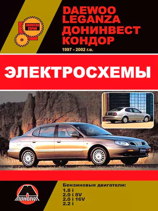 В PDF руководстве приведены подробные электросхемы расположения разъемов, электрических соединений и жгутов проводки Дэу Леганза первого поколения построенного на платформе V100 с 1997 по 2002 года выпуска. Данный мануал ознакомит с устройством и поможет в проведении самостоятельного ремонта электронных компонентов автомобиля.