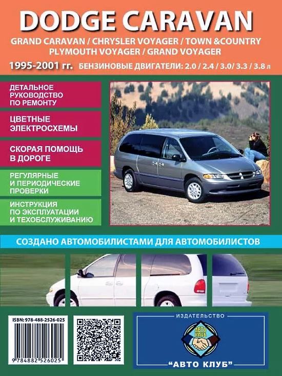 Руководство (мануал) по ремонту и эксплуатации Dodge Caravan и Grand Caravan, а также Chrysler Voyager, Grand Voyager и Town Country. В электронной книге рассмотрены автомобили третьего поколения с 1995 по 2001 года выпуска с бензиновыми двигателями.