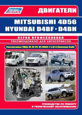 Профессиональное руководство по ремонту двигателей Mitsubishi, правила эксплуатации, инструкция по техобслуживанию и устройство дизельных двигателей Мицубиши 4D56/4D56EFI/4D56DI-D(Common Rail) и Hyundai / Kia D4BF/D4BH TCI/COVEC-F рабочим объемом 2,5 л.