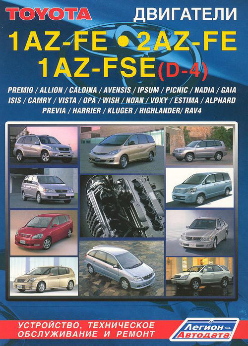 Справочное издание руководство по ремонту Toyota 1AZ-FE, 1AZ-FSE, 2AZ-FE, руководство по эксплуатации и техническому обслуживанию бензиновых силовых агрегатов Toyota 1AZ-FE, 1AZ-FSE рабочим объемом 2,0 л. и 2AZ-FE рабочим объемом 2,4 л.