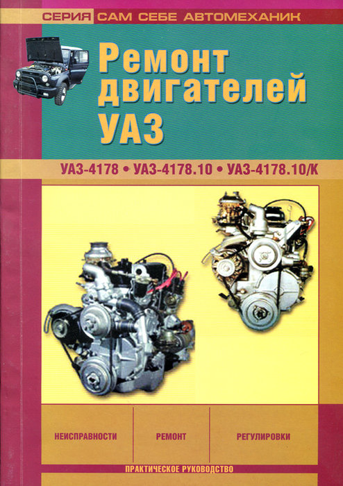Справочное иллюстрированное издание Руководство по ремонту двигателей УАЗ моделей УАЗ-4178, УАЗ-4178.10, УАЗ-4178.10/К Изучены неисправности, рассмотрены регулировки. Практическое руководство. Автор С. Афонин.