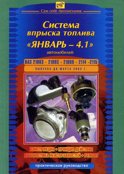 Серия: Сам себе АвтомеханикРуководство по ремонту и устройству системы впрыска топлива Январь 4.1 автомобилей ВАЗ 21083, 21093, 21099, 2114, 2115. Конструкция, принцип действия, диагностика неисправностей, ремонт. Практическое руководство. Под редакцией С. Афонина.В настоящем пособии в доступной форме рассматривается устройство, конструктивные особенности, а также методы проверки и ремонта системы впрыска топлива Январь-4.1, устанавливаемой на автомобили ВАЗ моделей 21083,21093, 21099. 2114, 2115.Описание, составленное в краткой, конкретной форме, устанавливает четкую последовательность операций по разборке, необходимым проверкам, сборке и регулировке системы впрыска. Также в мануале представлены указания по диагностике системы впрыска с электронным блоком управления по считыванию и расшифровке кодов неисправностей.ISBN 5-8069-0128-9Содержание книги: