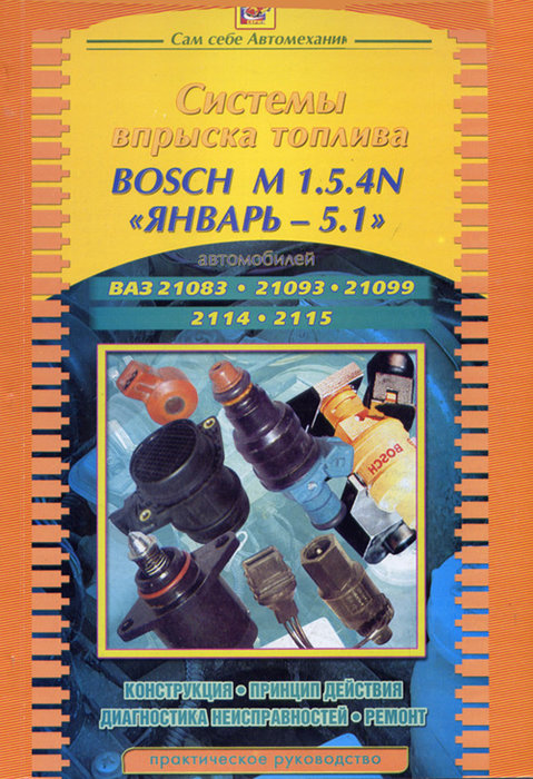 Руководство по ремонту и устройству системы впрыска топлива BOSCH M 1.5.4 N и Январь-5.1 автомобилей ВАЗ 21083, 21093, 21099, 2114, 2115.В книге рассматривается устройство, конструктивные особенности, а также методы проверки и ремонта систем впрыска топлива BOSCH M 1.5.4 N и Январь-5.1, устанавливаемых на автомобили ВАЗ моделей 21083, 21093,21099, 2114, 2115. Описание, составленное в краткой, конкретной форме, устанавливает четкую последовательность операций по разборке, необходимым проверкам, сборке и регулировке систем впрыска. В руководстве даются указания по диагностике систем впрыска с электронным блоком управления, по считыванию и расшифровке кодов неисправностей.