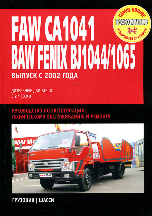 Справочное иллюстрированное издание Руководство по ремонту FAW CA1041, BAW Fenix BJ1044 / BJ1065, устройство, руководство по эксплуатации и техническому обслуживанию FAW CA1041, BAW Fenix BJ1044 / BJ1065 с задним приводом, которые выпускаются начиная с 2002 года и оборудованы 4-х цилиндровыми рядными дизельными двигателями литражом 3,2 и 3,9. Оснащены грузовики 5-ти ступенчатой МКП. Типы авто – шасси для спецнадстроек, бортовой грузовик.