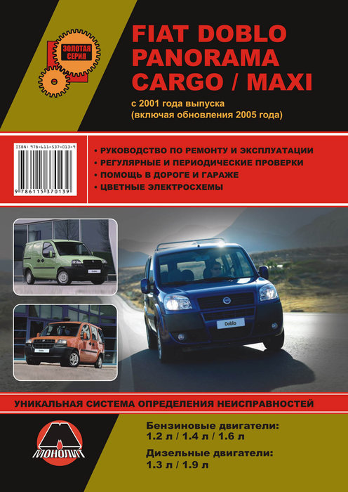 Справочно-информационное Пособие по обслуживанию Fiat Doblo / Doblo Panorama / Doblo Cargo / Doblo Maxi, а также устройство, руководство по эксплуатации и ремонту автомобилей Fiat Doblo / Fiat Doblo Panorama / Fiat Doblo Cargo / Fiat Doblo Maxi c 2001, а также обновленные модели с 2005 года выпуска, оборудованных бензиновыми двигателями рабочим объемом 1,2, 1,4, 1,6 л. и двигателями на дизельном горючем рабочим объемом 1,3 и 1,9 л. Ремонт Фиат Добло. Инструкция по эксплуатации. Электросхемы.