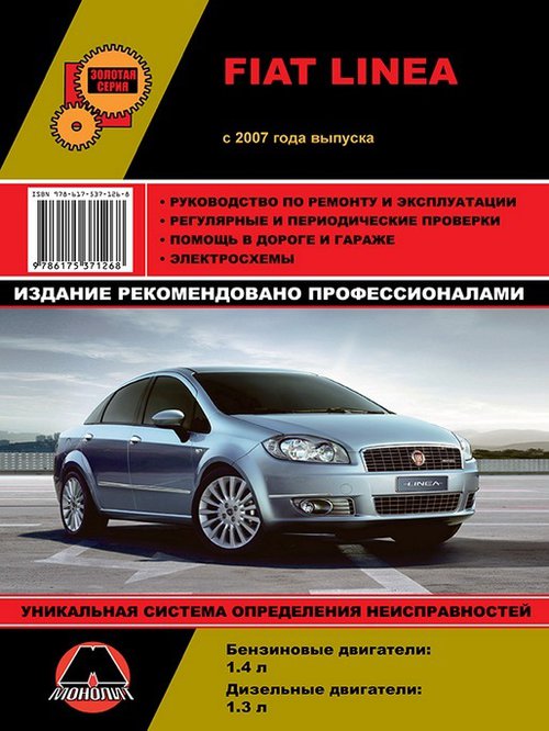 Cправочно-информационное иллюстрированное руководство по ремонту Fiat Linea, руководство по эксплуатации Fiat Linea и руководство по техническому обслуживанию Fiat Linea, устройство Fiat Linea с 2007 года выпуска. Мидель Фиат Линеа оборудована бензиновыми двигателями литражом 1,4 и дизелем литражом 1,3. Мощность моторов составляет 77, 90 и 120 л.с. Ремонт Фиат Линеа. Инструкция по эксплуатации. Рекомендации по ТО. Система определения неисправностей. Электросхемы.
